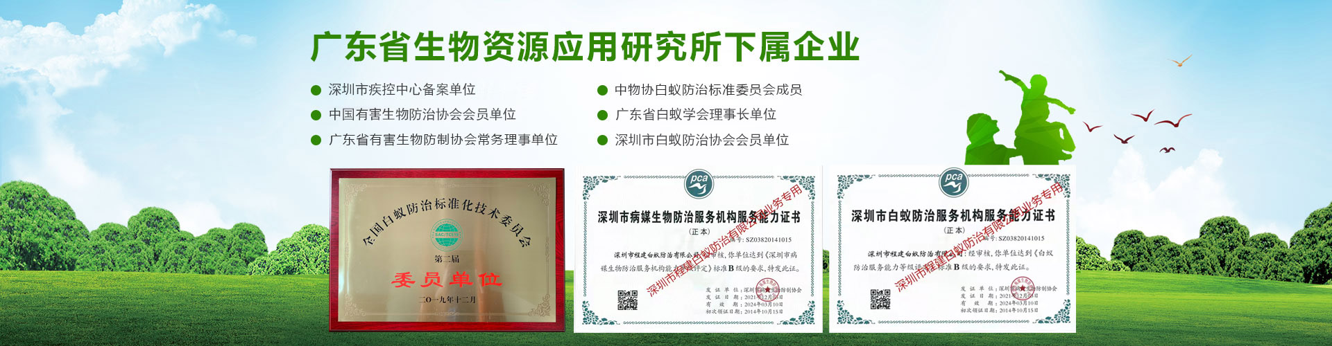 專注于徹底根治、防治結(jié)合,售后跟蹤服務,專業(yè)服務工程師有豐富實戰(zhàn)經(jīng)驗超過十年。持有專業(yè)資格證書認證:“有害生物防制服務機構(gòu)服務能力證書B級”、“白蟻防治服務機構(gòu)服務能力證書B級”所有員工持有“深圳市白蟻防治上崗證”和“深圳市除蟲滅鼠上崗證”,雙資格證上崗服務。榮獲過:“優(yōu)質(zhì)服務示范單位”、“白蟻防治服務信譽AAA級單位”、“深圳市白蟻防治先進單位”、“深圳市十大白蟻防治品牌”、“深圳市殺蟲公司”、“深圳市消殺公司”先進單位等榮譽。